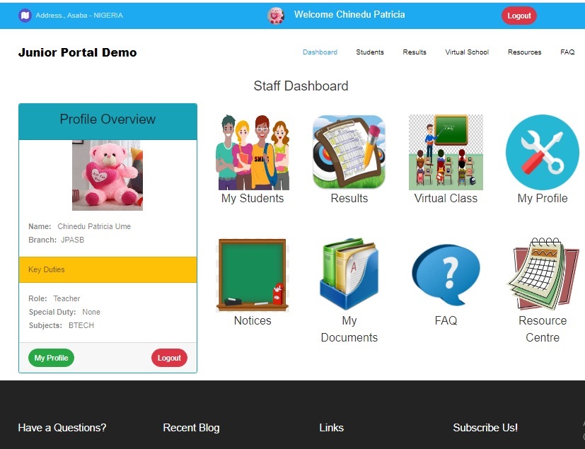 Features of the School Portal include – Student and Staff Registration, Personal Access Pages, Result Entry, Viewing and Printing, Web Mails, Content Management System, Administrative Tools amongst others.